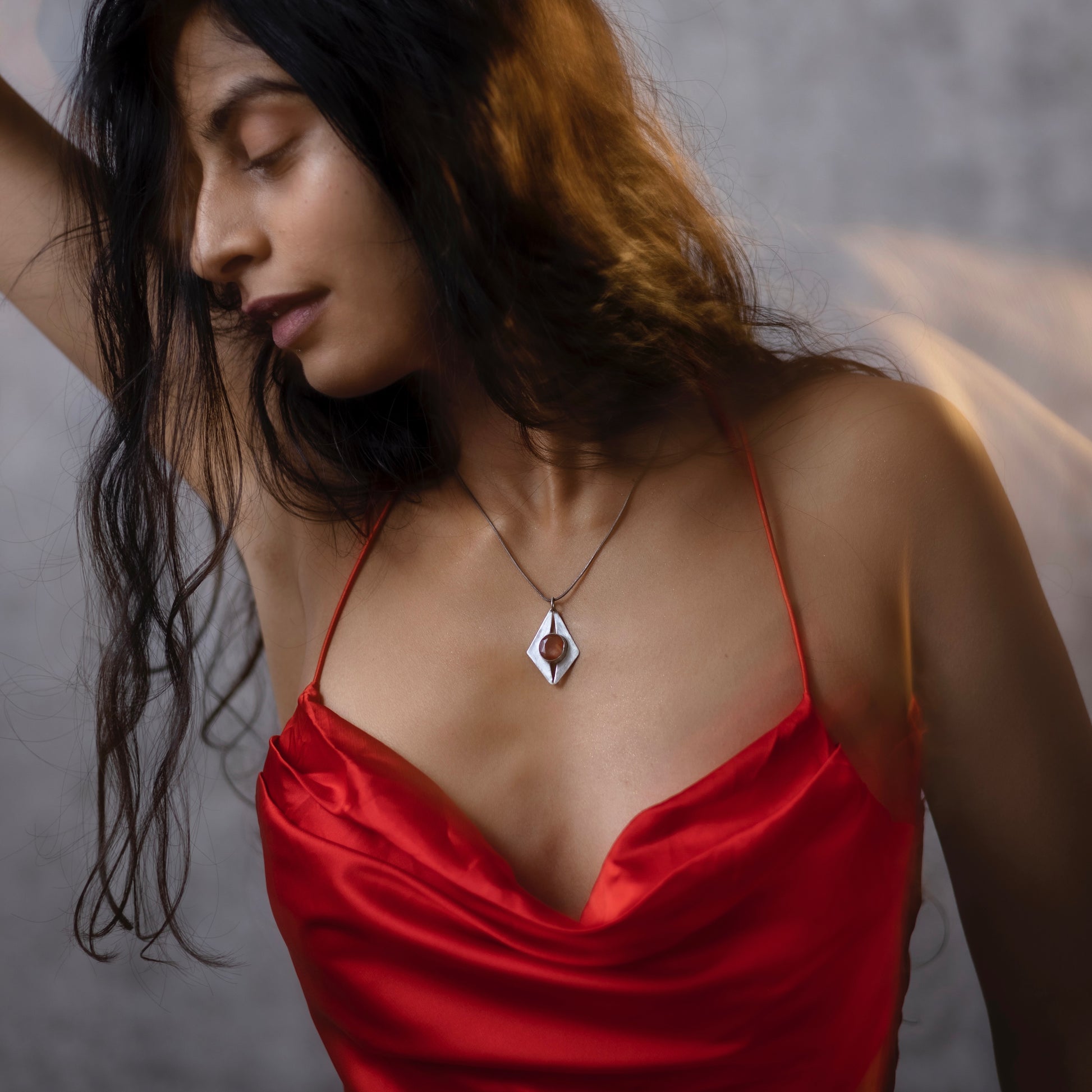 This Carnelian pendant invokes the soul of the Phoenix and helps one to not only listen to their heart’s desires but also gives them the courage to strive towards them.